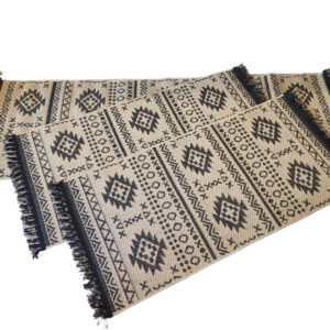 - Ένα εκπληκτικό, διαχρονικό ψάθινο χαλί που θα σας ενθουσιάσει με κρόσσια στο χρώμα της πλέξης στις δύο άκρες.