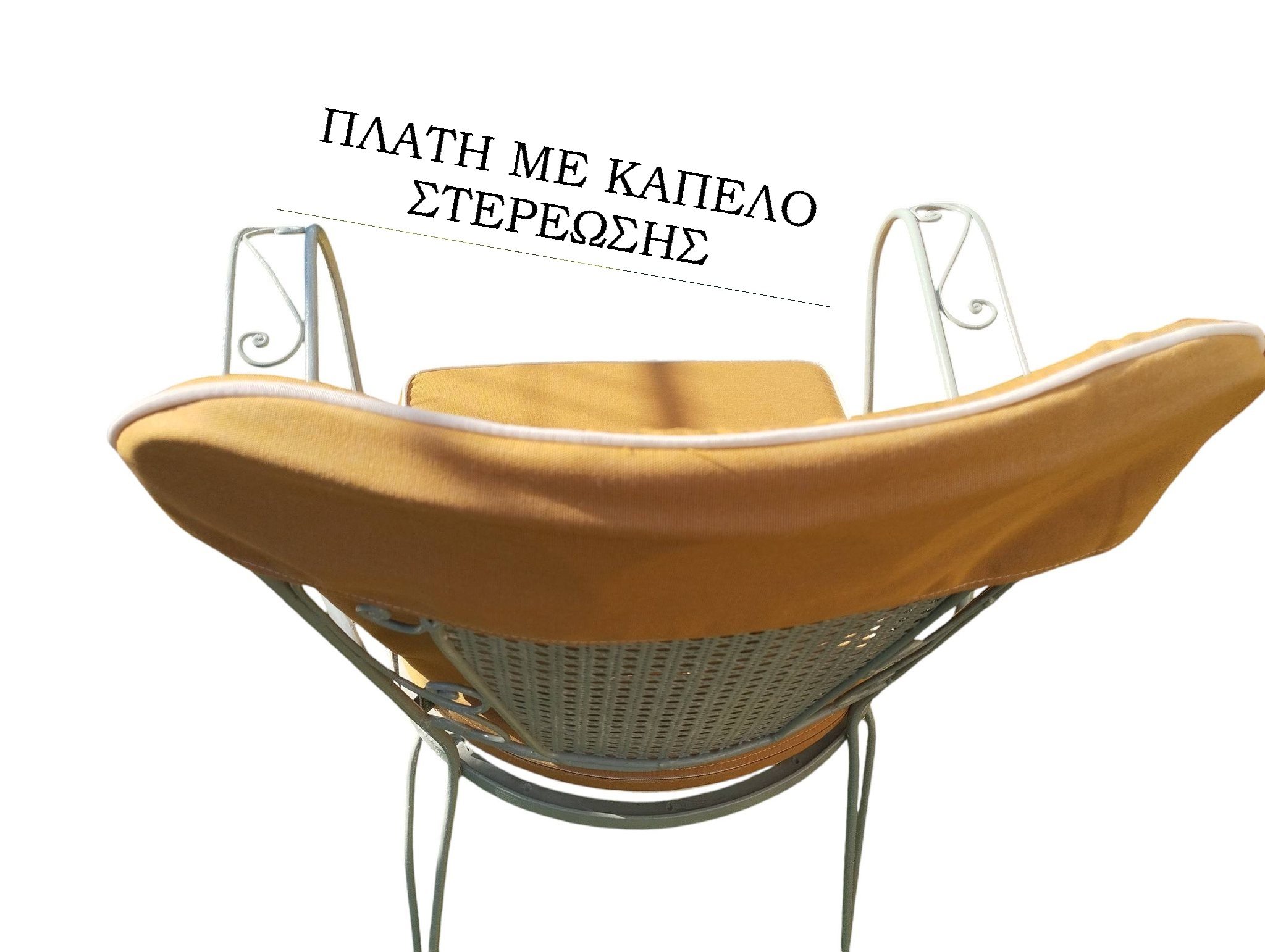 - Πλάτη 3εκ πάχος με προστατευτικό ”φιλέτο” περιμετρικά και με ενσωματωμένο ”καπέλο” στο πίσω επάνω μέρος ώστε να τοποθετείται χωρίς άλλο δέσιμο με μία μόνο κίνηση (δείτε σχετικά στις φωτογραφίες).