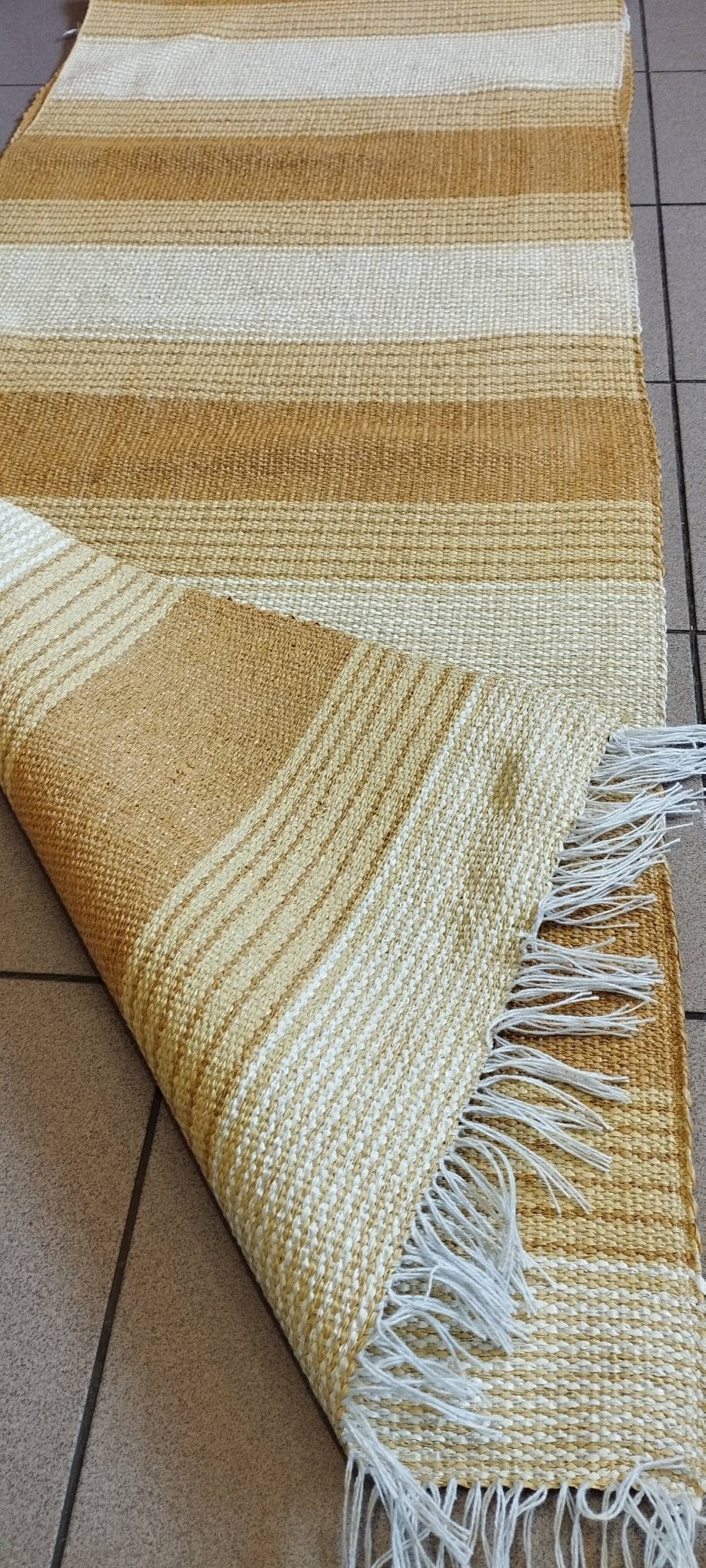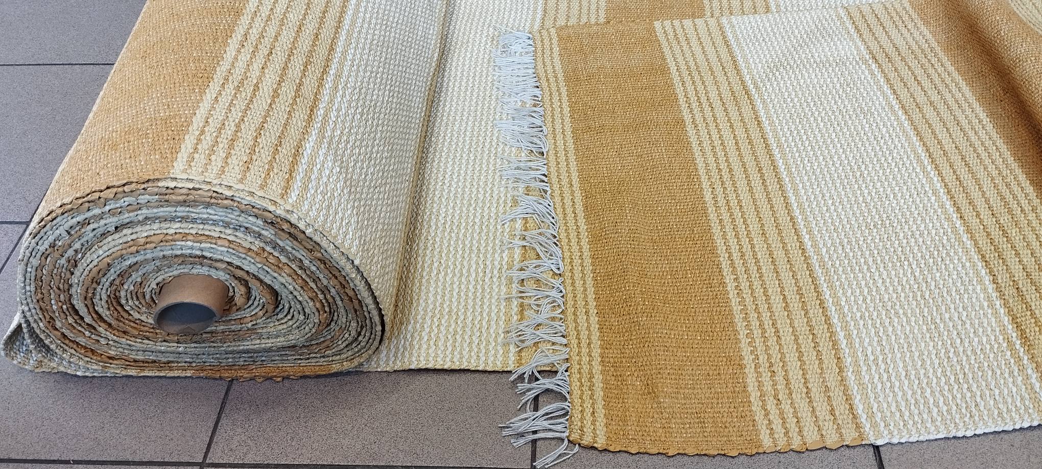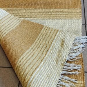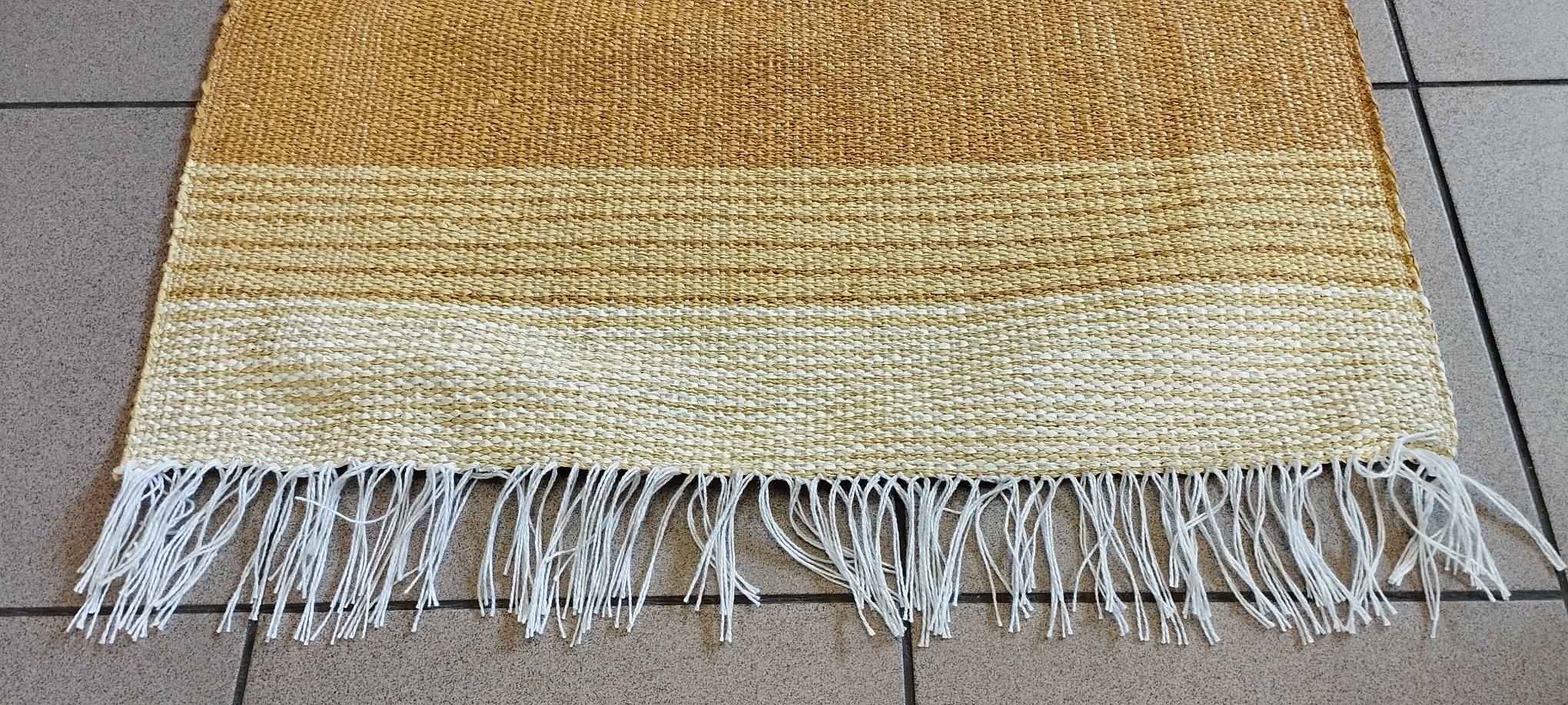 Πλαστικοποιημένος Πλεκτός Υφαντός Διάδρομος Διπλής Όψης – Χρώμα Yellow – Beige – 0.67εκ πλάτος με Κρόσσι – Με το μέτρο