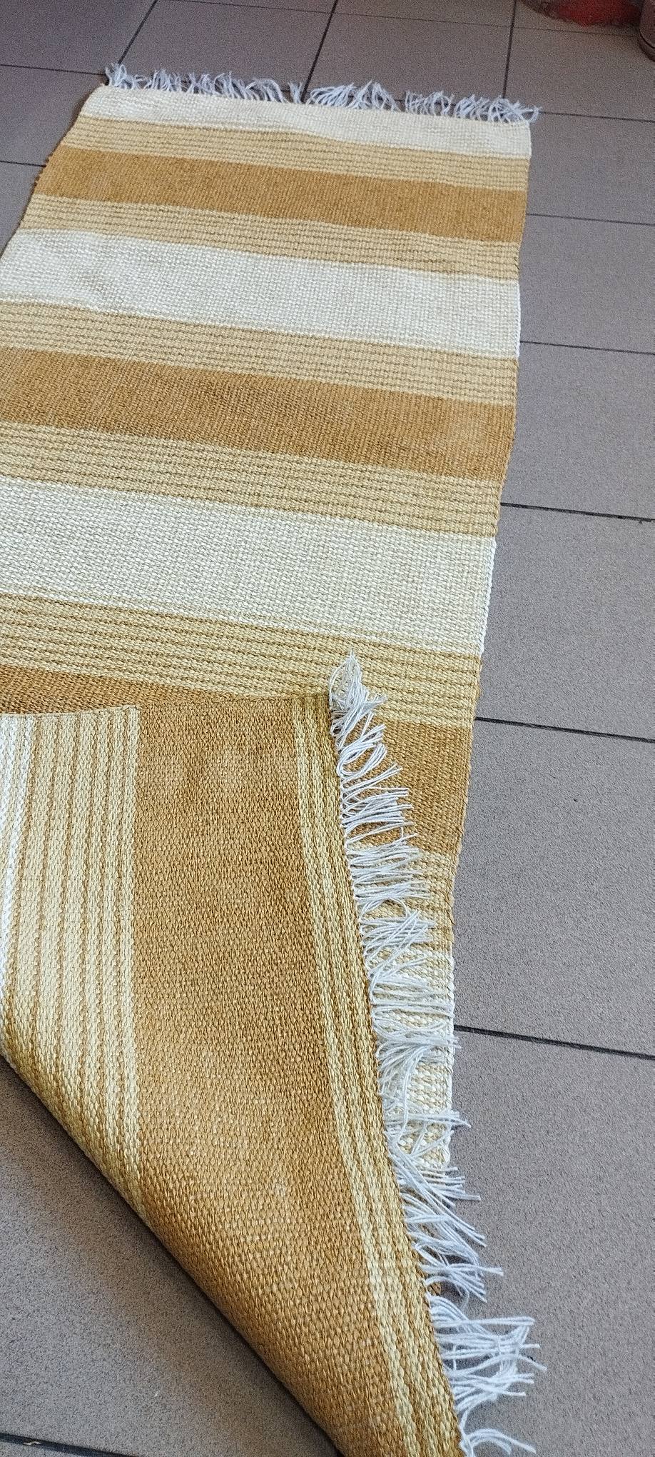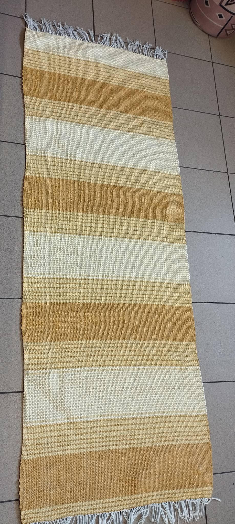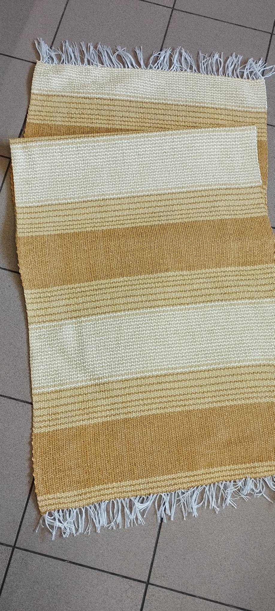 Πλαστικοποιημένος Πλεκτός Υφαντός Διάδρομος Διπλής Όψης – Χρώμα Yellow – Beige – 0.67εκ πλάτος με Κρόσσι – Με το μέτρο