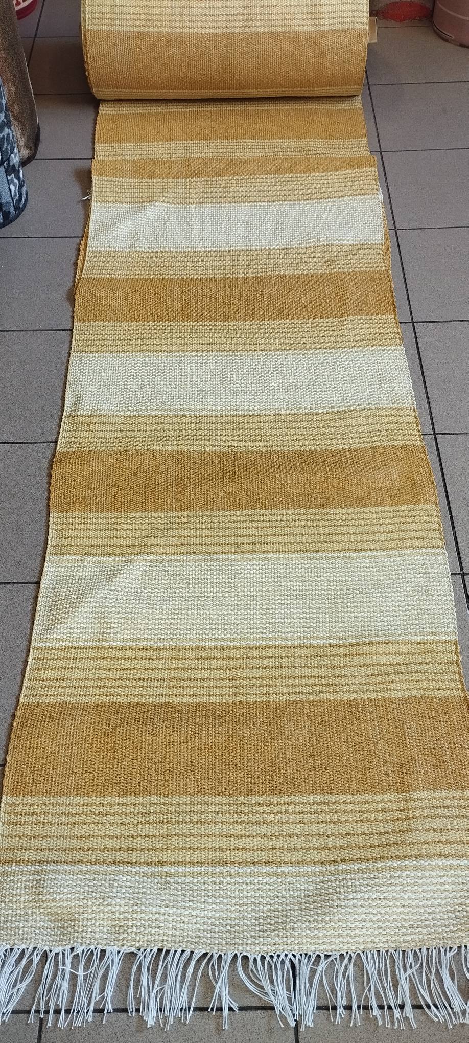 - Πλαστικοποιημένος Πλεκτός Υφαντός Διάδρομος Διπλής Όψης που φτιάχνεται με το μέτρο (custom) στο μήκος που θέλετε και τελειώνει στις δύο άκρες σε κρόσσι.